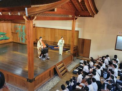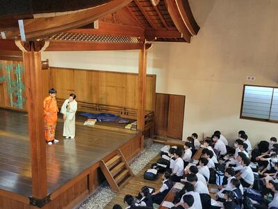 河村能舞台にきて、能の見学をします。