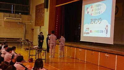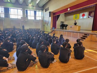 2学期終業式が行われ、76日間の2学期が終了しました。2学期は運動会、バザー、合唱コンクール、夢わーくなど多くの行事があり、忙しくも充実した日々だったと思います。年末年始は家族と過ごす時間を大切にしつつ、規則正しい生活を送ってください。