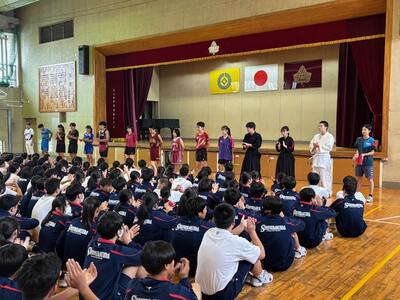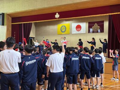 来週から始まる学校総合体育大会に向けて、全校で壮行会を行いました。