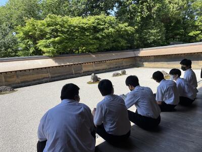 クラス別行動の様子です。龍安寺の石庭と和菓子作り体験です。