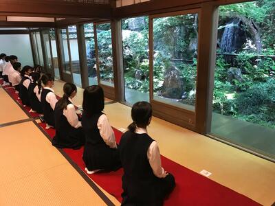 和菓子づくり体験と、南禅寺方丈庭園見学とで抹茶体験の様子