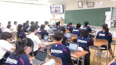 生徒の皆さんは、まず教室で自分のPCタブレットを用いて