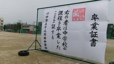第70回卒業証書授与式が挙行されました。本校70期生の皆さん・保護者の皆様、ご卒業おめでとうございます。在校生(1,2年生)も参加しての卒業式でしたが、在校生・卒業生ともに、立派な態度で臨むことができ、素晴らしいものとなりました。また、ご来賓の皆様には、2時間近くの式ではありましたが、ご参列いただきまして、誠にありがとうございました。さらには、PTAの皆様方には、事前準備はじめ、当日のお手伝い等ありがとうございました。明日から、70期生(3年生)が登校しなくなる学校を思うとさみしい限りですが、3年生の皆さんには、新しい世界で大きく羽ばたいて活躍してくれることを期待しています。
